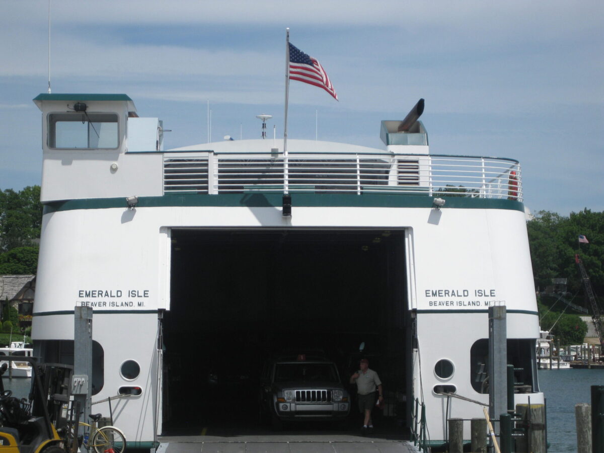 - The vehicle ferry to Beaver Island leaves from Charlevoix, Michigan. It’s just over a two-hour ferry ride to St. James on the Emerald Isle or the Beaver Islander. Check out the Beaver Island Boat Company website for the ferry schedule and rates.