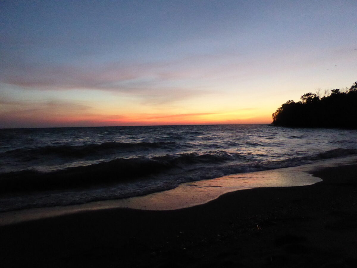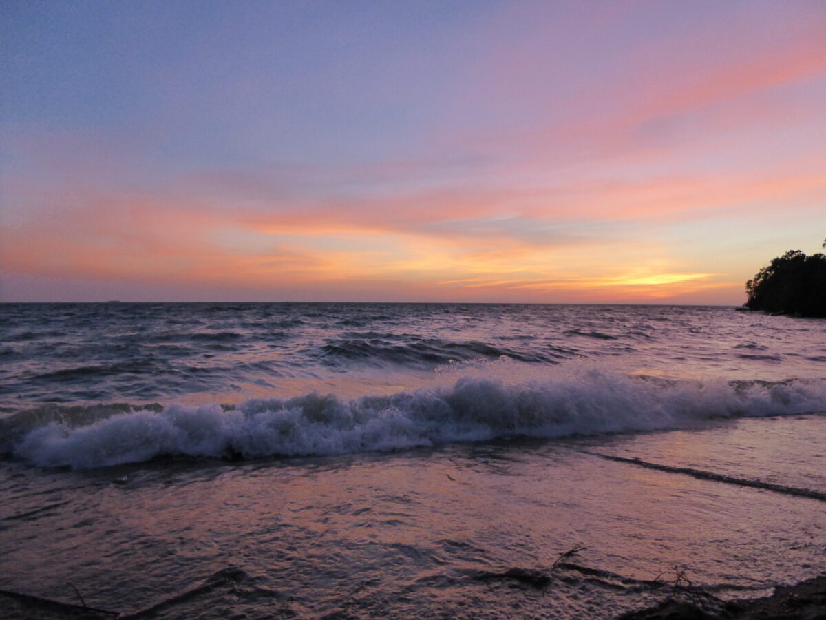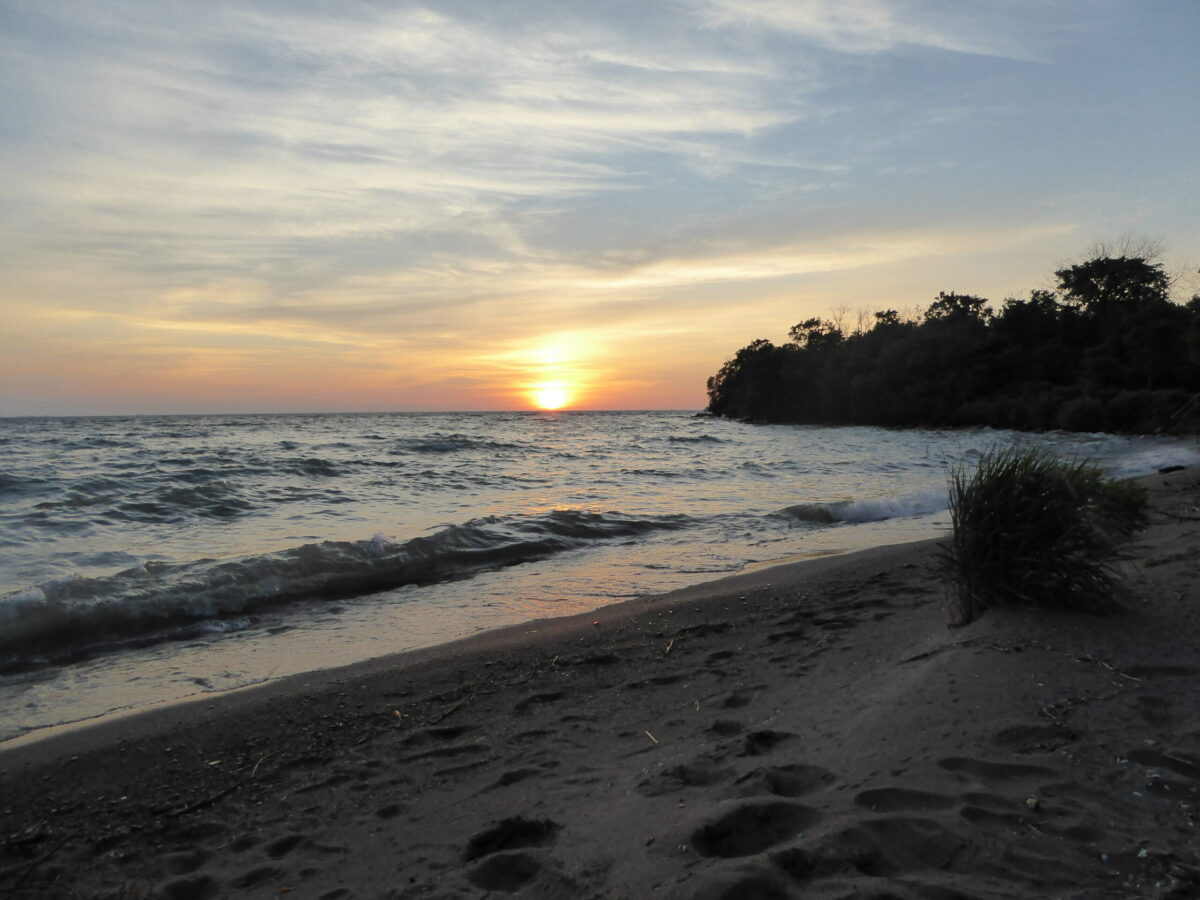 The view of the beach looking south to Fish Point. Middle Island is in the distance with Kelleys Island beyond it.